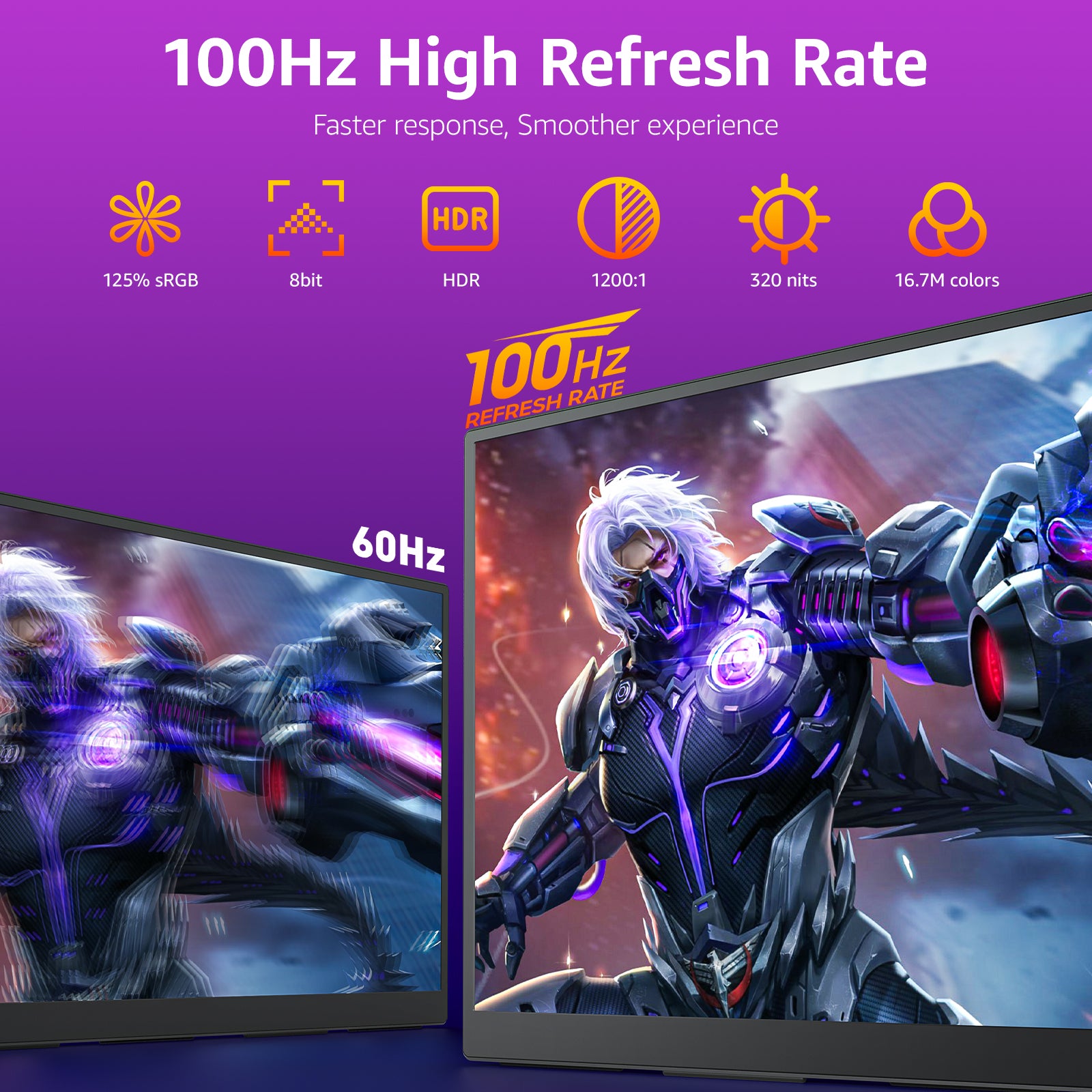 VisionOwl 18.5 Inch Portable Monitor, 100Hz FHD 1080P IPS Display, 125% sRGB, USB-C & HDMI, Built-in Stand & Speakers, VESA Compatible, External Screen for Laptop, Mac, Surface, Xbox, PS5/PS4