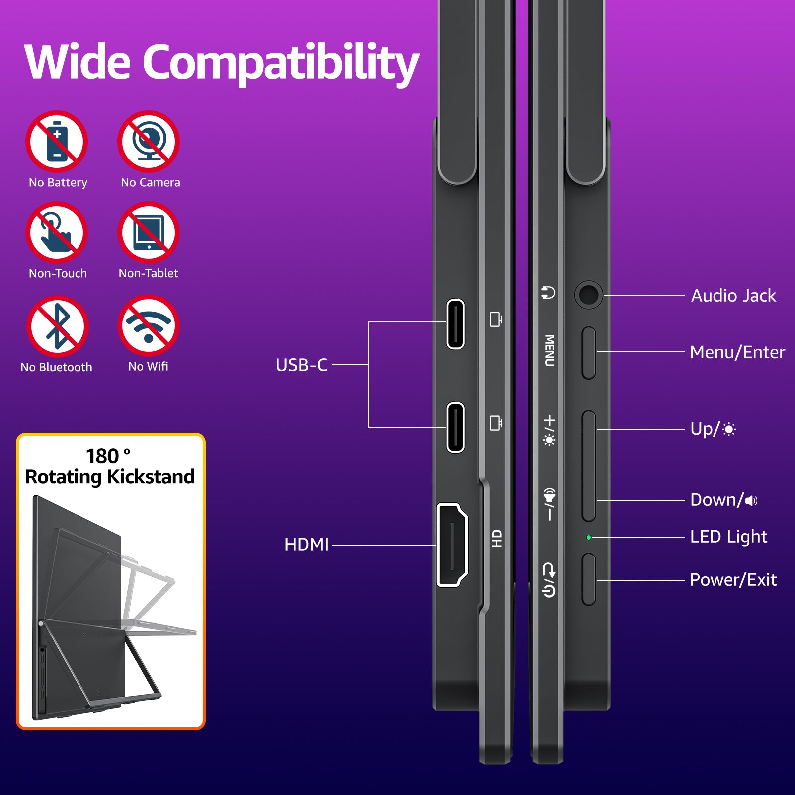 - Premium Construction for Years of Reliable Use: Built with a sturdy metal back housing and a seamlessly integrated stand, the VisionOwl portable monitor combines durability with refined aesthetics. Each unit is meticulously tested to ensure stable performance and dependable operation over the long term.